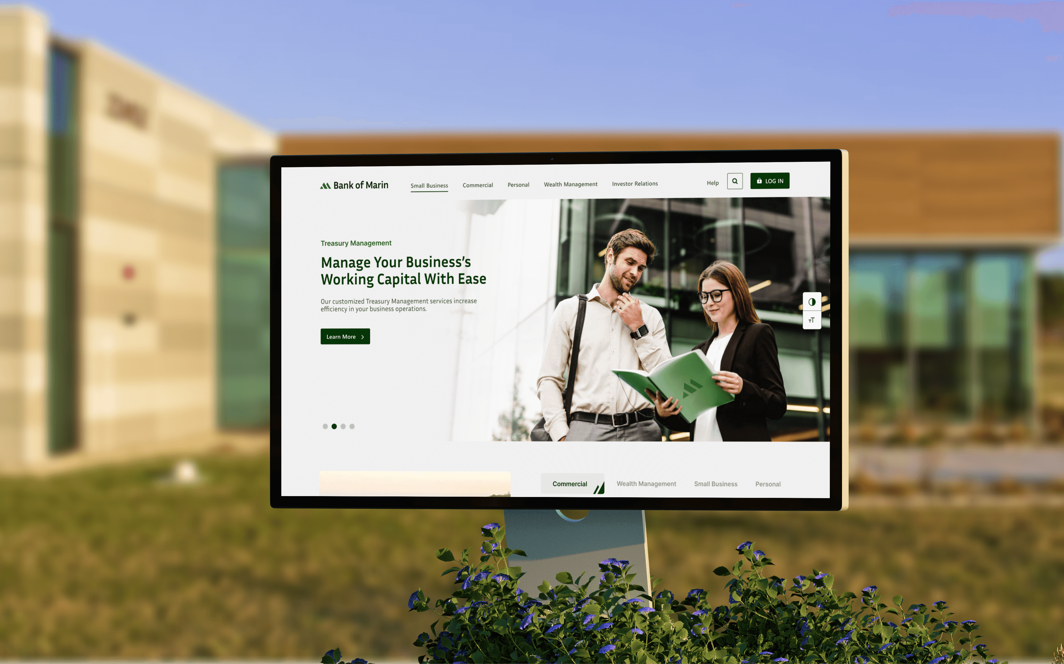 On audit, the bank’s existing logo had legibility issues, felt “aggressive” to clients, and wasn’t up to modern visual standards. Bank of Marin needed a solution that was inviting, yet professional.