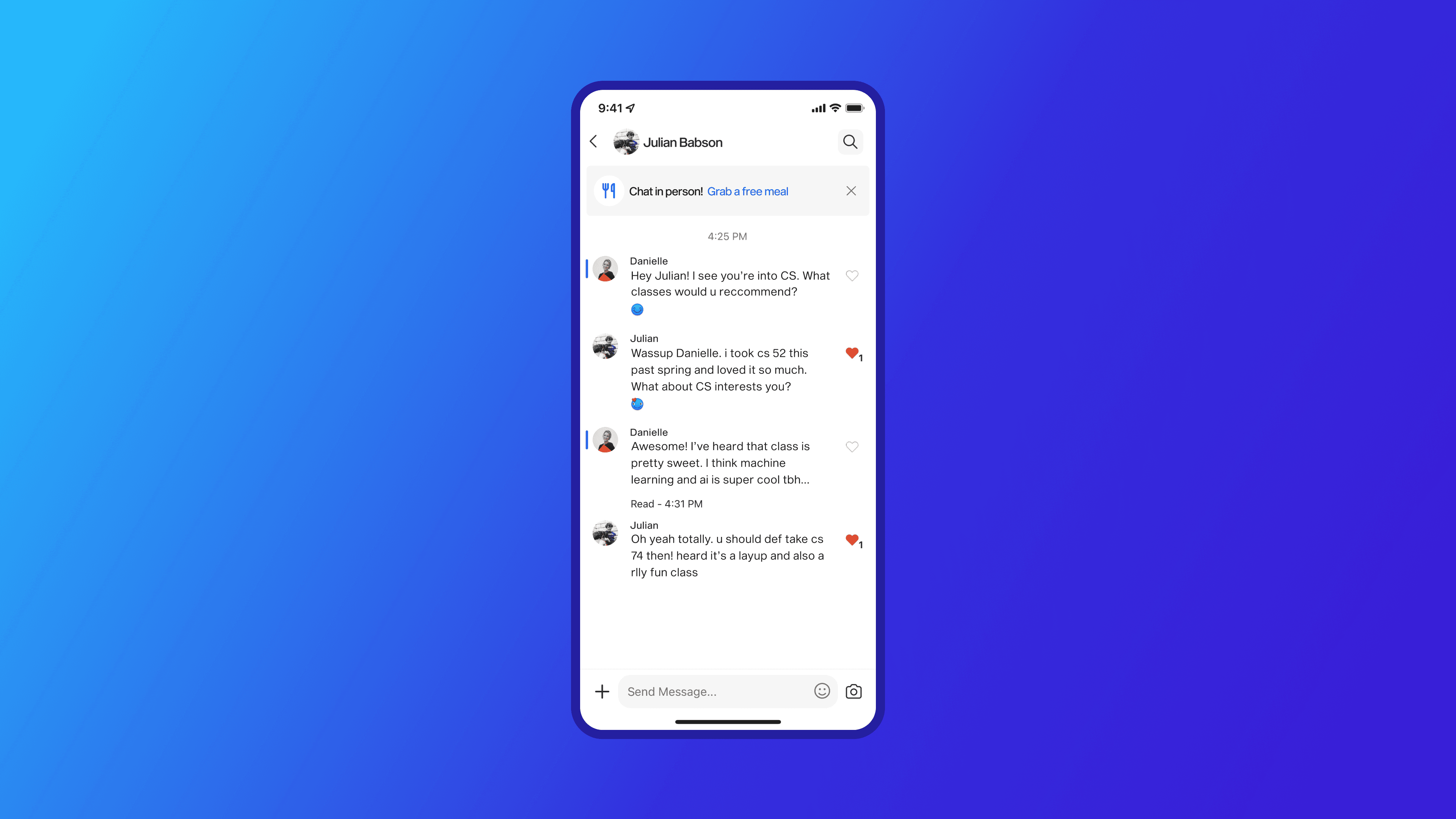 At many colleges, students use the app GroupMe as a primary means of communication for clubs, sports teams, course chats, and student organizations. Our research indicated that roughly 84% of students belonged to at least 2 GroupMe communities. Was there a way to use GroupMe to connect inquisitive underclassmen with experienced upperclassmen?